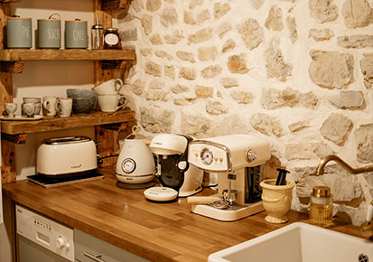 Vaisselle, lave-vaisselle, grille pain, machines à café, thé et chocolat, four micro-onde… tout y est.
