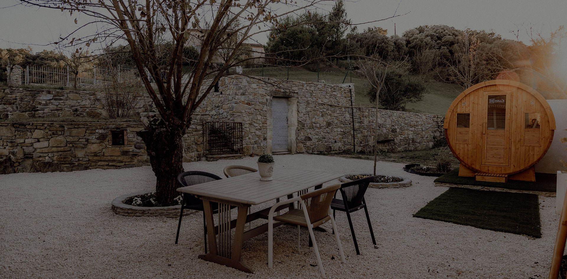 - Un sauna tonneau scandinave chauffé avec des pierres de lave pour un instant cocooning en pleine nature.